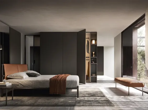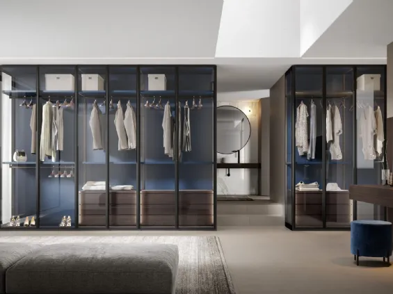 Design Kleiderschrank mit glatten Flügeltüren aus dunklem Glas und Materiallaminat